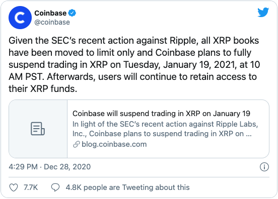 Why is ripple (xrp) cryptocurrency becoming delisted? Securities and exchange commission (sec) revealed a lawsuit against ripple labs and two of its main leaders for allegedly having made a $1.3 billion unregistered securities offering with xrp. In a statement from voyager digital, first reported by coindesk, the company will discontinue trading of xrp on its platform effectively from 18 th january 2021 at 12 pm et. Ripple's sales of xrp have been one long unregistered securities offering since 2013, and that xrp has never had any utility other than being an investment contract. The legal action raised fears that xrp, which acts as a settlement token atop the ripple blockchain, could actually be security, prompting many us exchanges, including okcoin and coinbase, to delist the token from their trading platforms until further notice. Several cryptocurrency exchanges have started delisting xrp. Securities and exchange commission, sec—an independent government agency responsible for. Why is ripple (xrp) cryptocurrency becoming delisted? Xrp is the cryptocurrency that is exchanged on this platform to facilitate transactions. Needless to say, the cryptocurrency market responded to this news by offloading xrp en masse. Xrp is still piling up in ripple's reserves, and it will take a long time before all these tokens are released from escrow at the current pace of the company's sales. / xrp delisting continues b2c2 simplex and more are out : The implications of xrp being deemed an unregistered security forced the hands of popular crypto exchanges who had to delist the asset in haste.